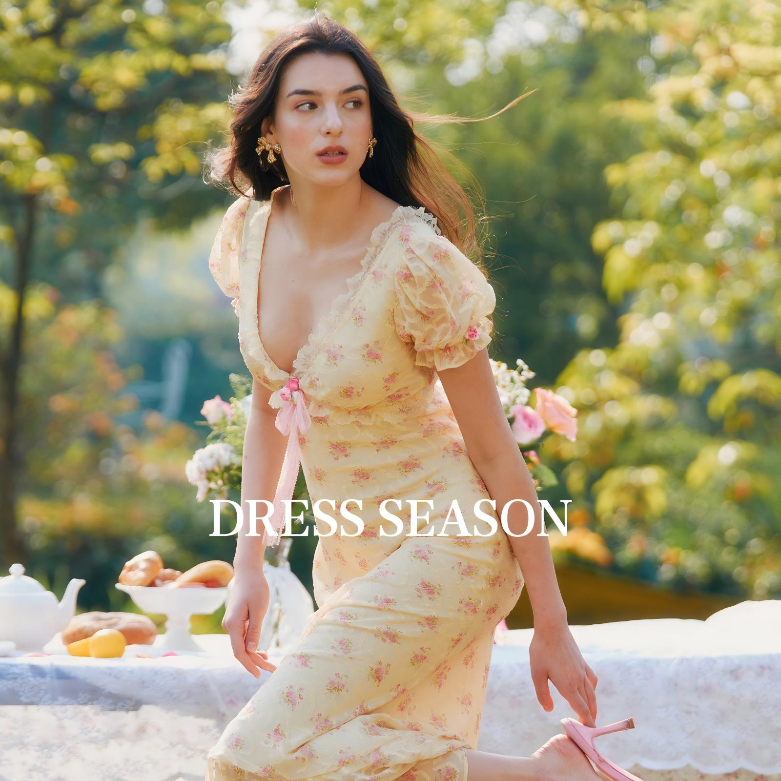 Hera Floral Ruffled Flaring Cuff Midi Dress