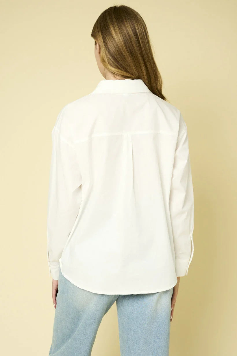 This elegant oversized shirt features a stylish bow detail, combining comfort with sophistication. Its versatile design makes it suitable for various occasions, from casual outings to semi-formal events. Available in multiple sizes, this top offers a relaxed fit that flatters different body types.