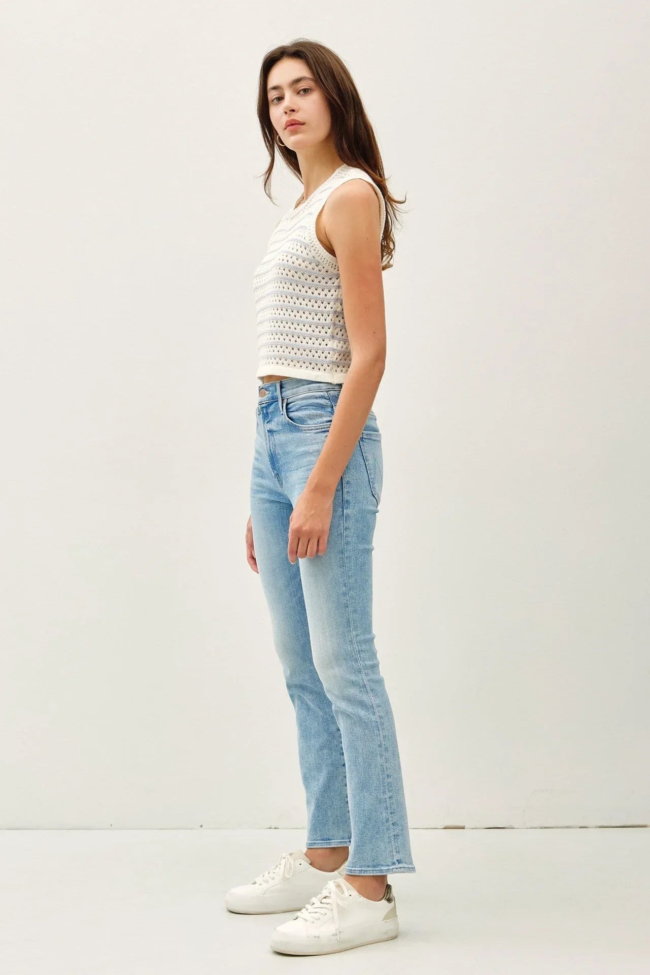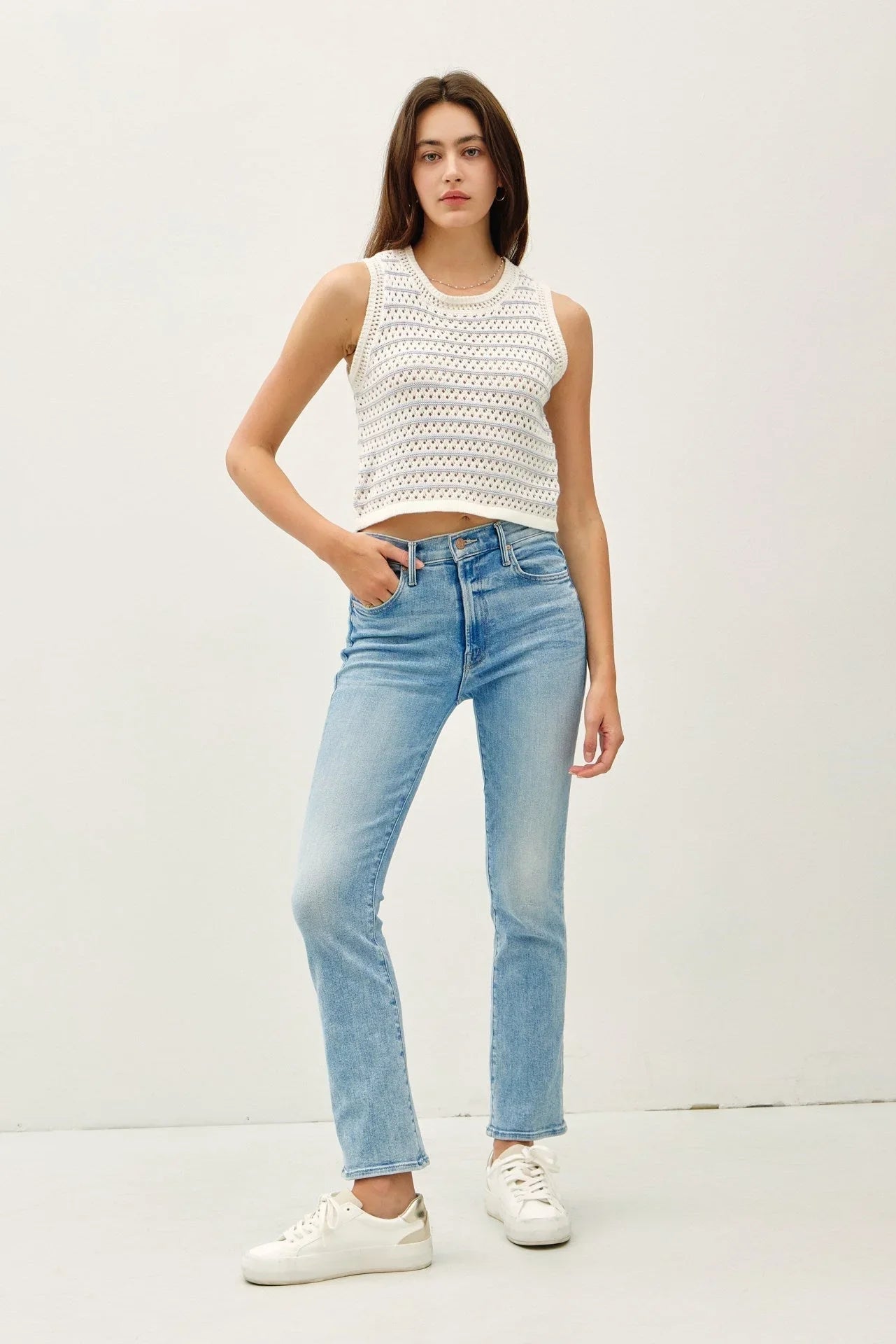 Pair it with high-waisted jeans for a chic, laid-back look or layer under a blazer for a polished finish. Whether you're heading out for brunch or enjoying a relaxed day at home, this sweater tank is your go-to for style and comfort.