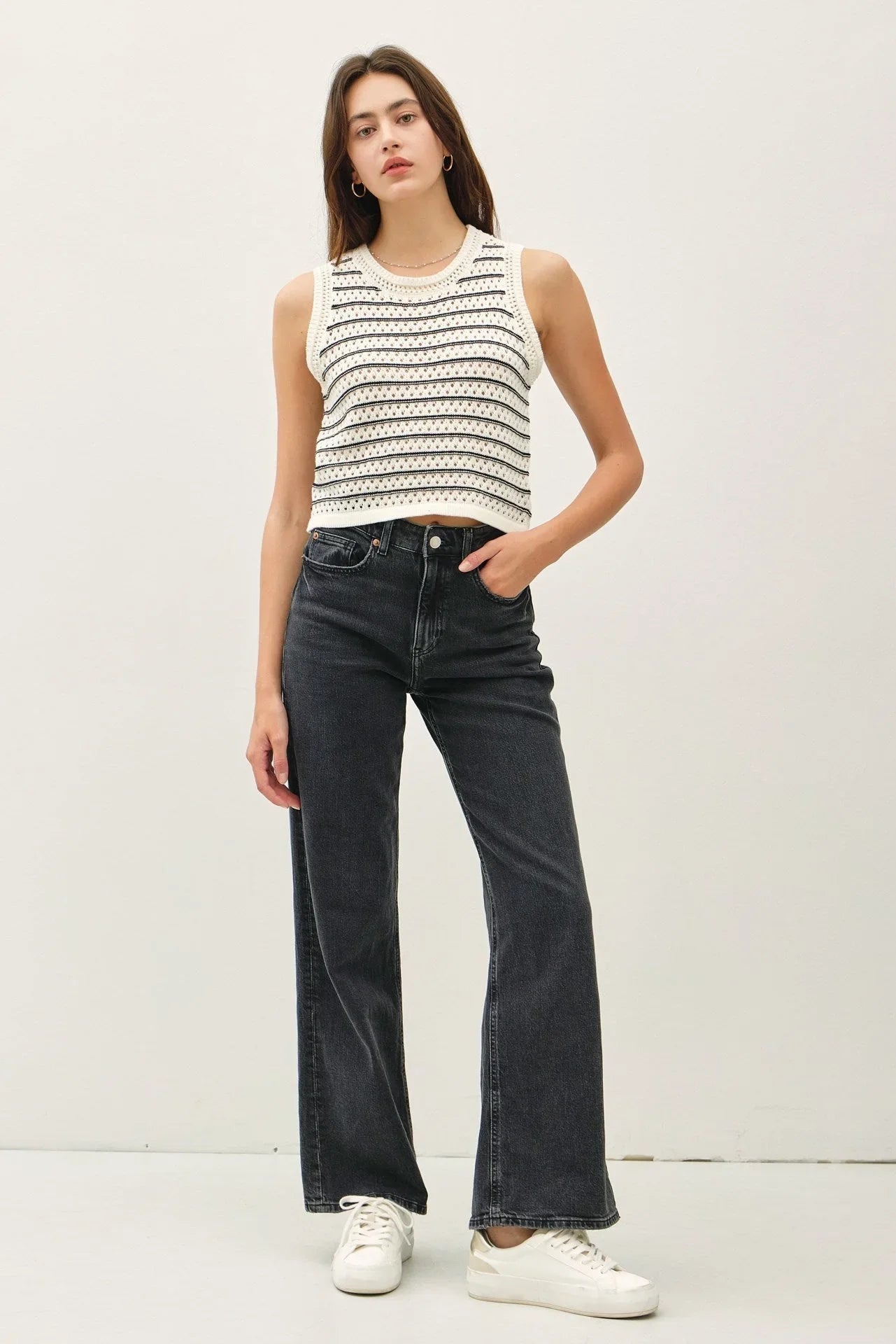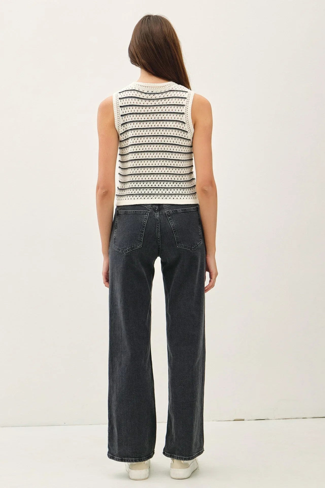 Elevate your casual wardrobe with the Chunky Knit Striped Sweater Tank. This timeless piece combines effortless style and cozy comfort, making it a versatile addition to your closet.