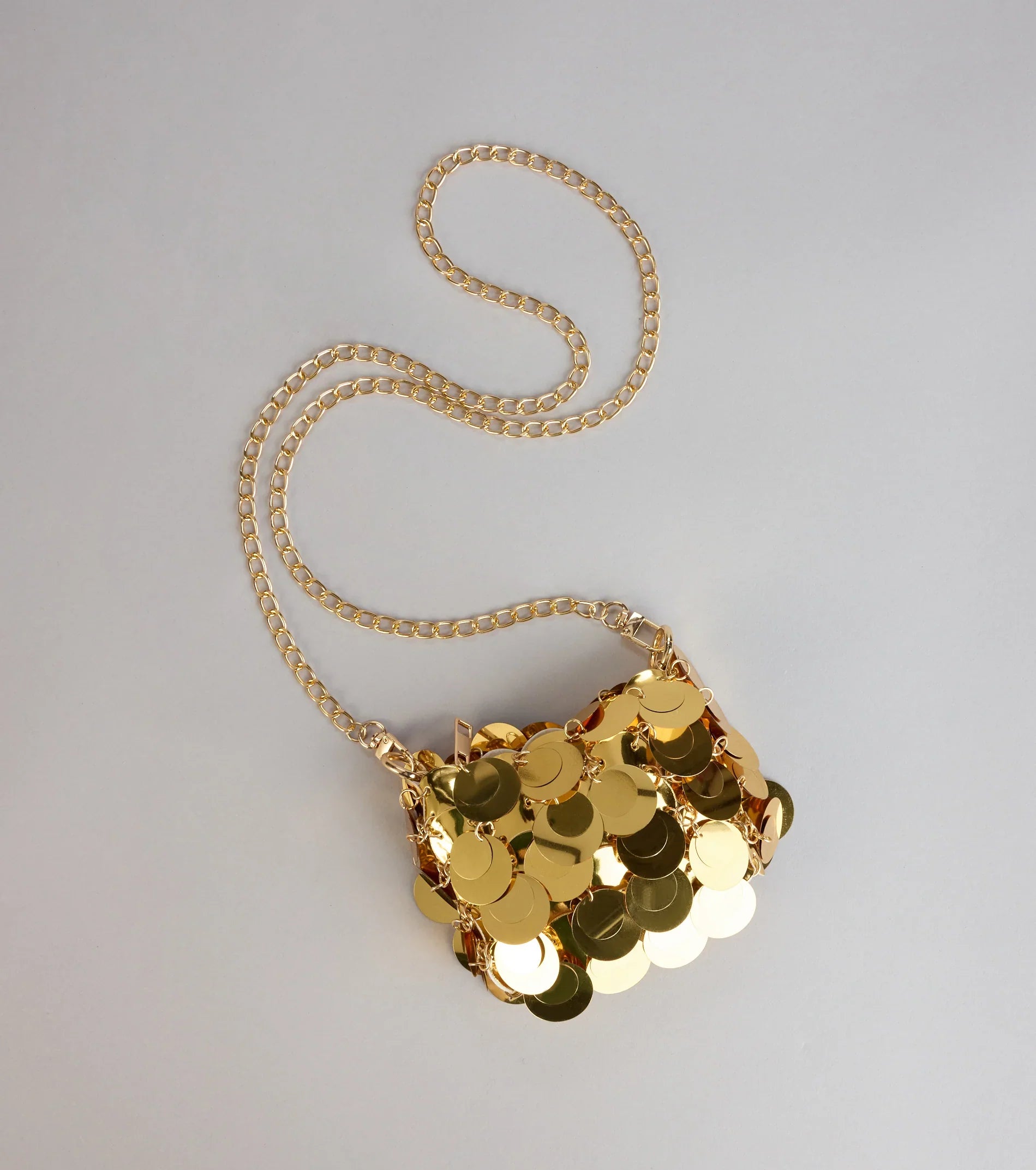 Small bag, big sparkle. This mini crossbody shines from every angle with allover paillette sequins—made for dancing, photos, and any night that deserves a little extra shimmer.
