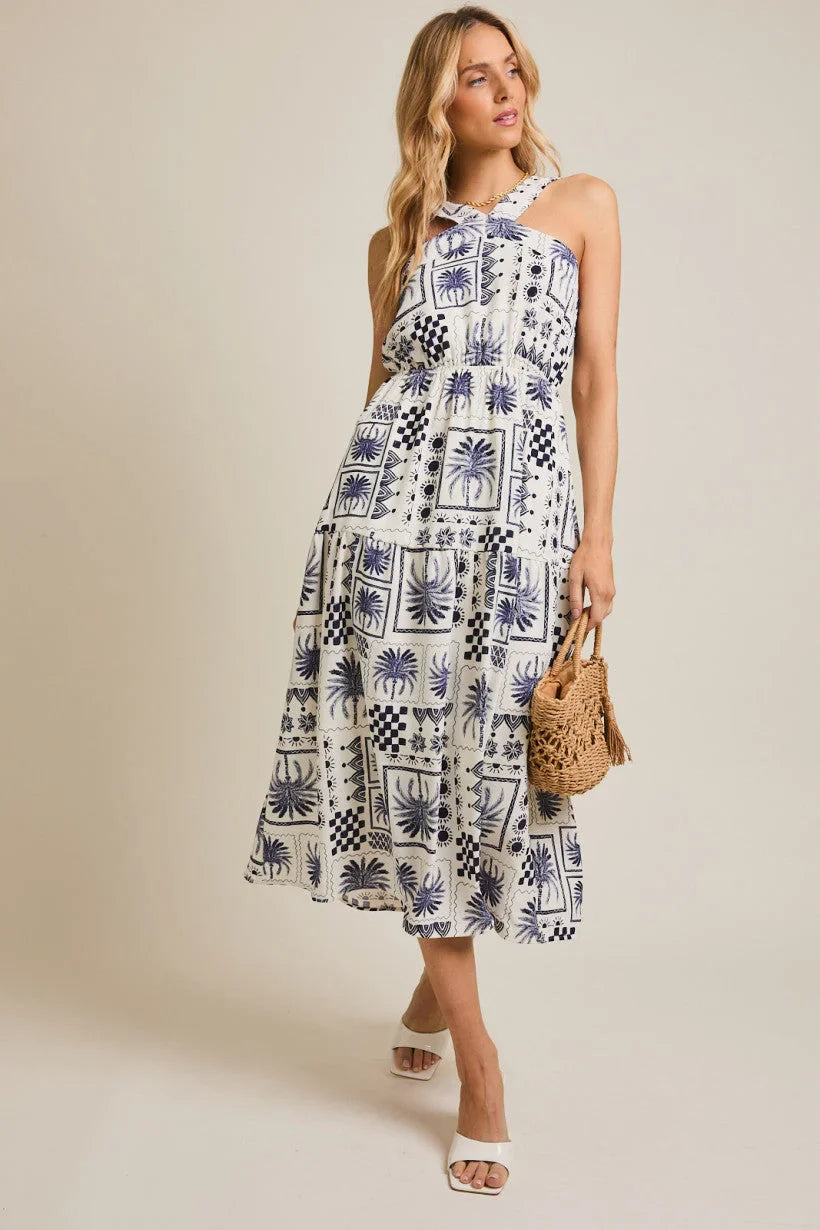 The halter neck design accentuates your shoulders and neckline, while the flowing silhouette flatters your figure. Ideal for casual outings, garden parties, or seaside strolls, this dress pairs beautifully with sandals, heels, or a woven bag for a chic, put-together look.