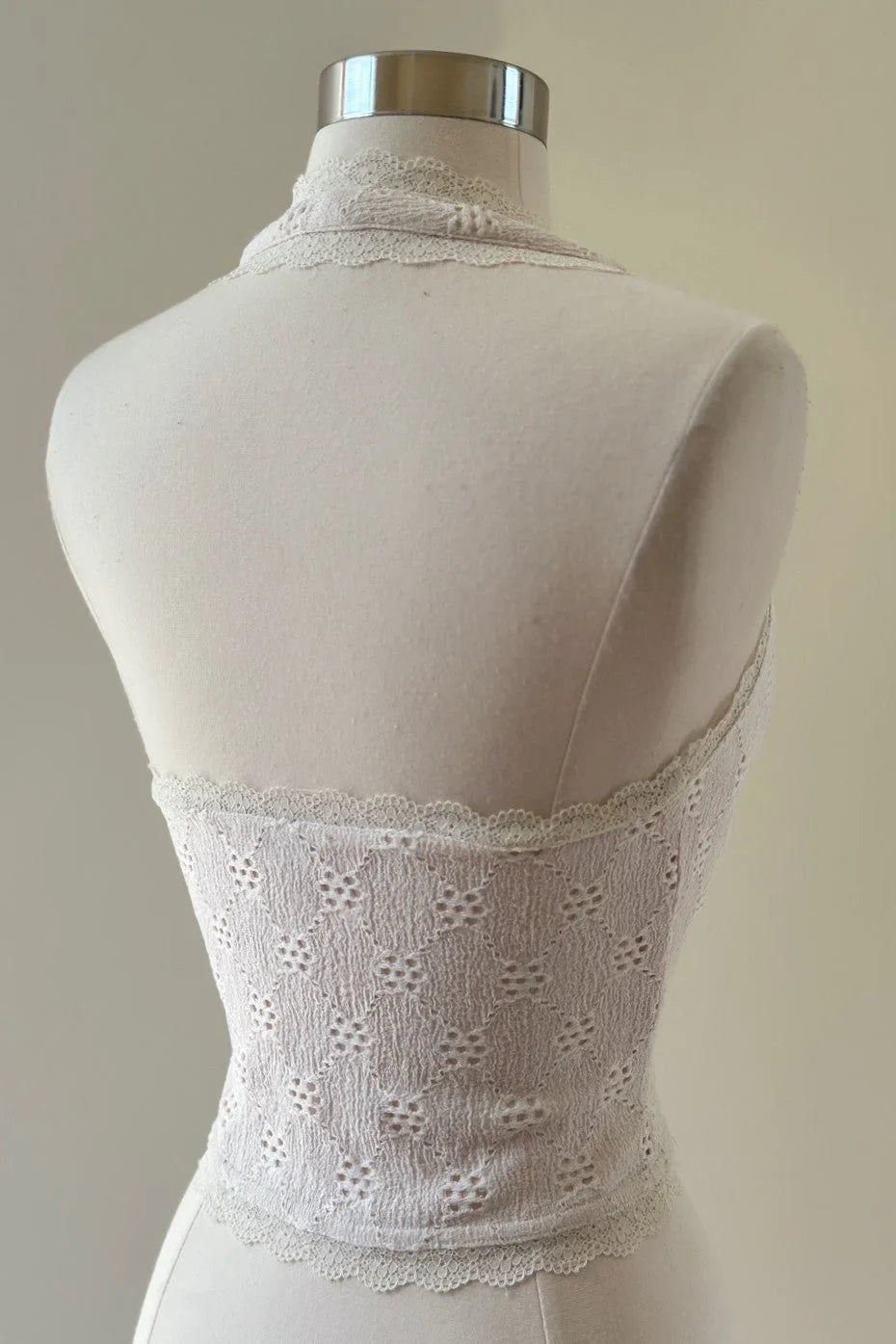 Elevate your bohemian style with the Lace Trim Eyelet Halter Top from Daisy lane. This captivating piece features a delicate lace trim that adds a touch of romantic elegance, while the eyelet design enhances its breezy, free-spirited charm. The V neckline beautifully frames your décolletage, and the front bow tie detail offers a playful yet chic finishing touch.