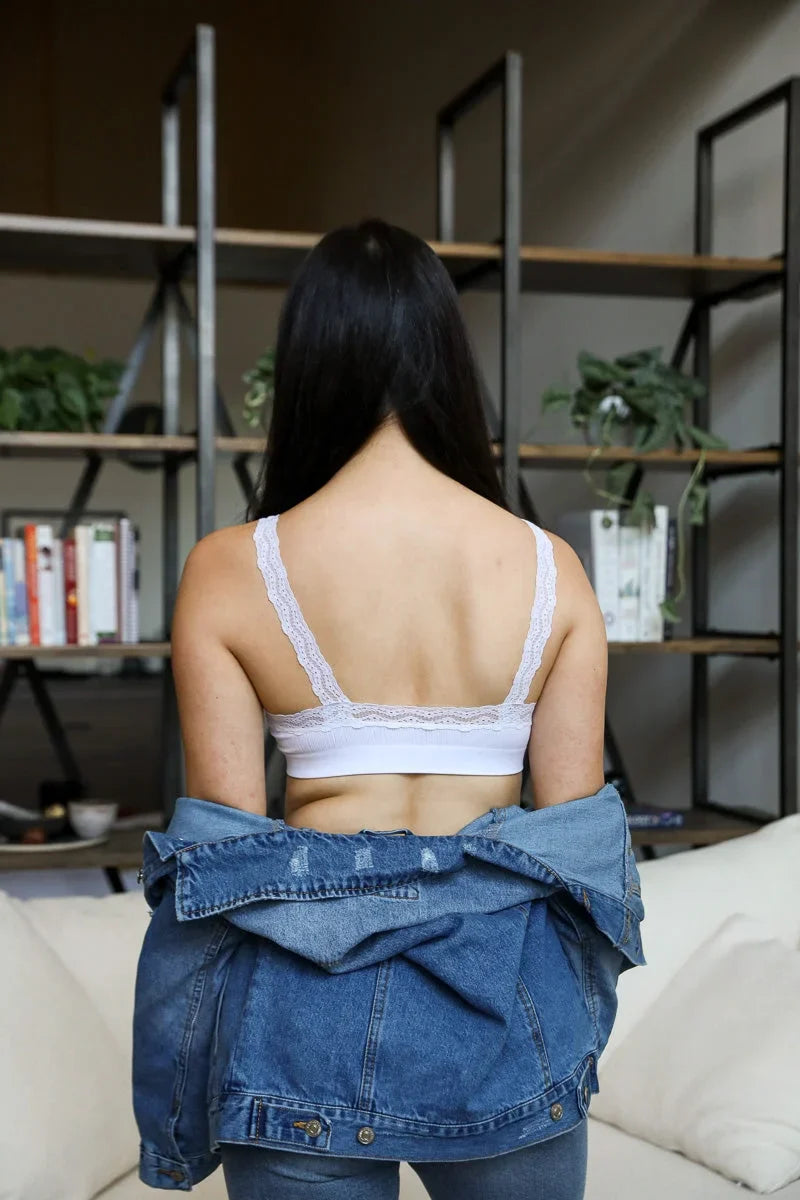 Experience comfort and feminine elegance with our lace trim padded bralette top. This soft, lightweight design features delicate lace trim and gentle padding, offering a perfect blend of sophistication and coziness. Ideal for daily wear or special occasions, this bralette adds a touch of vintage-inspired charm to your lingerie collection.