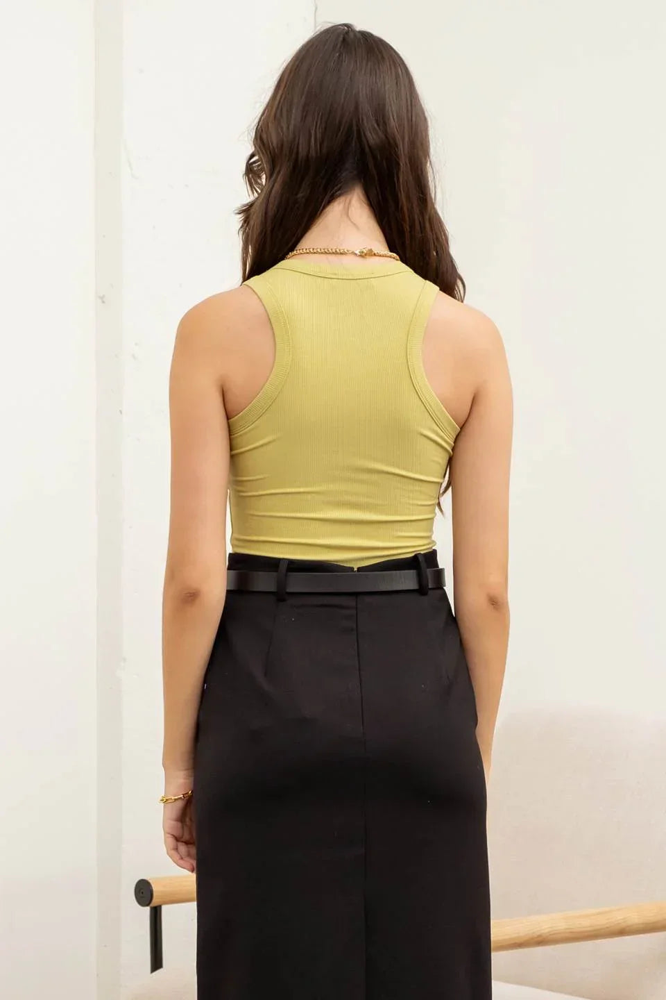 round neckline sleeveless washed pattern fitted knit top