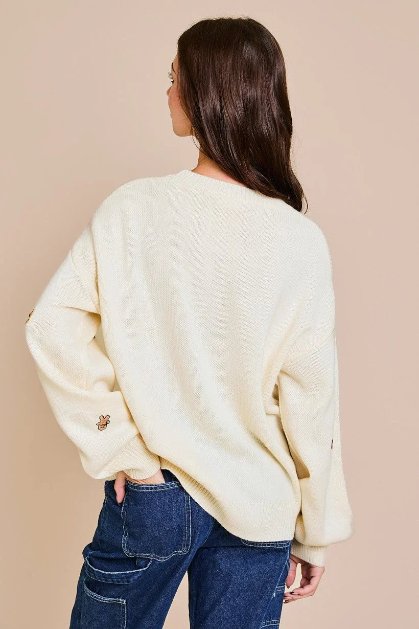 Celebrate the holidays in style with our Round Neck Long Sleeve Embroidered Sweater. Adorned with beautiful embroidery, this cozy sweater adds a touch of elegance to your festive wardrobe. Perfect for gatherings and casual outings, it combines comfort and charm effortlessly.
