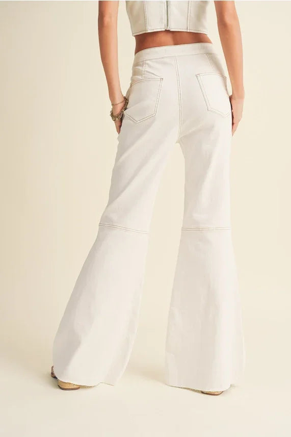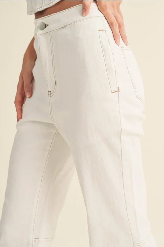Experience the perfect blend of style and comfort with our stretched cotton denim look pants. These boho chic bottoms offer the appearance of denim while providing the softness and flexibility of cotton. The addition of polyester and spandex ensures a flattering fit that maintains its shape throughout the day.