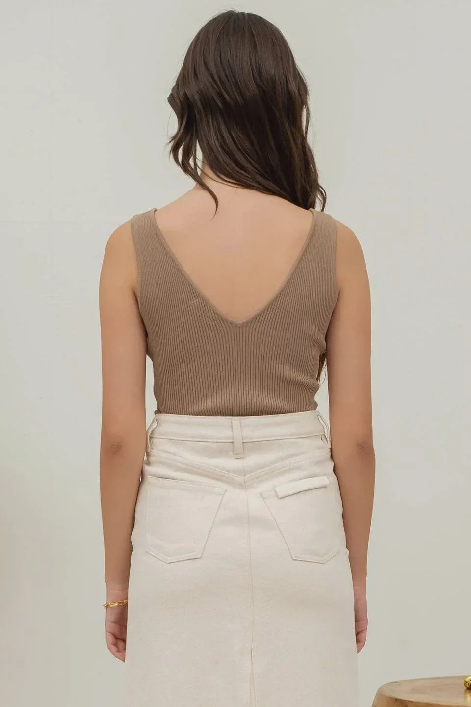 v neckline sleeveless fitted ribbed tank top solid